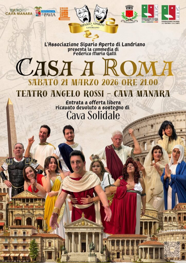 L’Amministrazione Comunale, in collaborazione con la Biblioteca Comunale “Carlo Collodi”, la Provincia di Pavia e la Federazione Italiana del Teatro e delle Arti, organizza per sabato 21 marzo 2026 alle ore 21,00 presso il Teatro Comunale “Angelo Rossi” la rappresentazione della commedia di Federico Maria Galli “Casa a Roma”, interpretata dal gruppo “Associazione Teatro Aperto di Landriano”