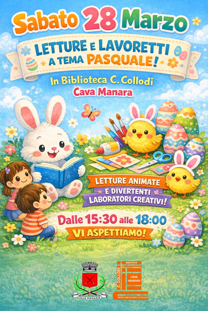 Sabato 28 Marzo dalle ore 15.00 alle ore 18.00 vi aspettiamo in biblioteca per letture e lavoretti di Pasqua !!